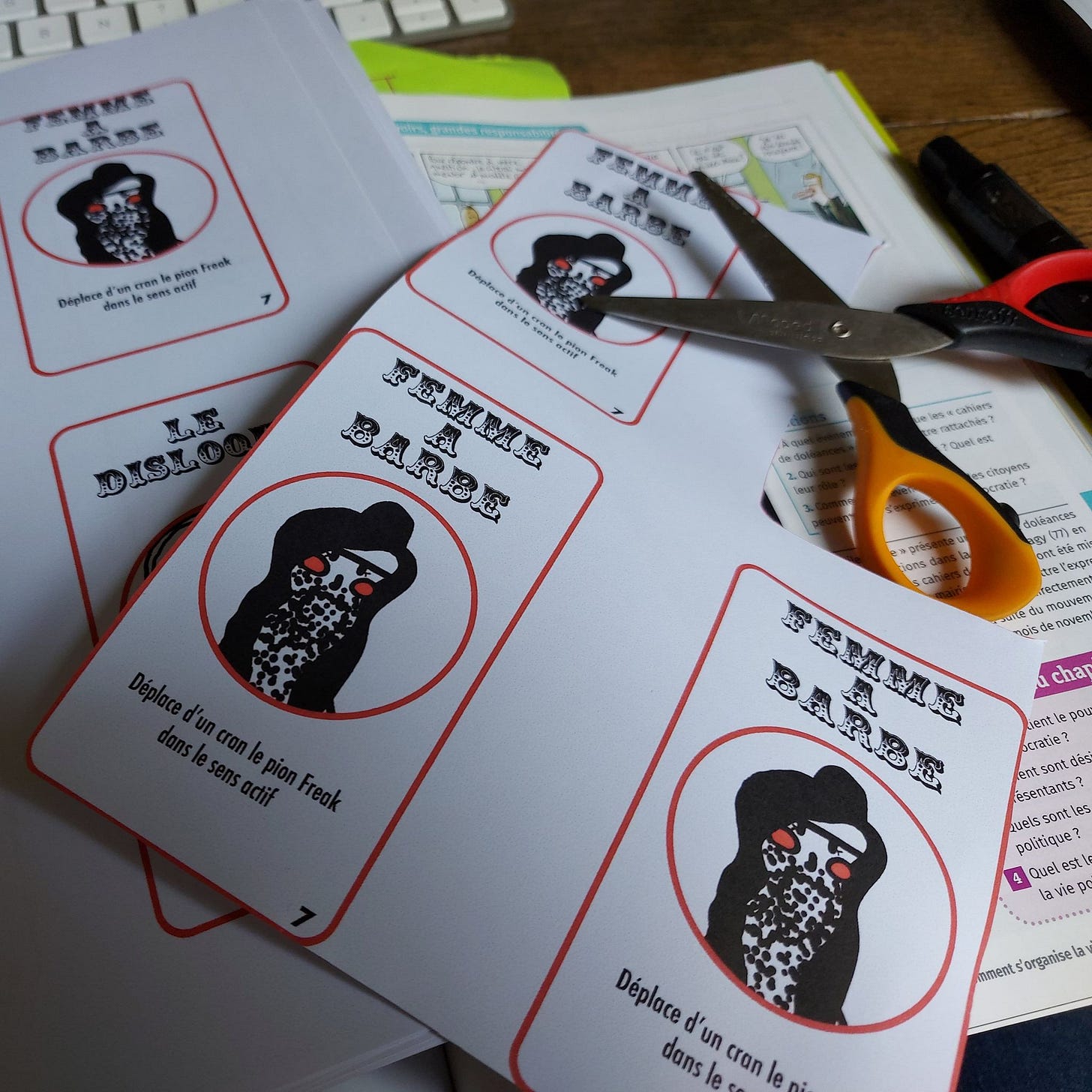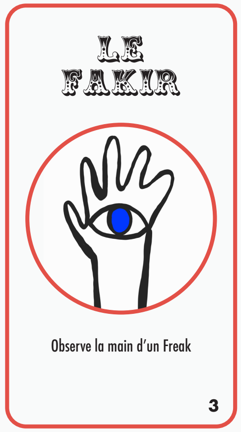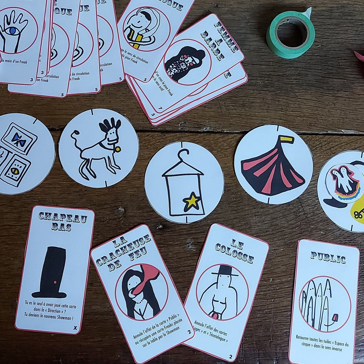 Cette méthode express permet de passer de l’idée au prototype en un temps record ! C’est grâce à elle que j’ai créé Freak Show 🎪 en 2020, lors d’un concours organisé par Yeast Games et Do it your game sur le thème “Histoire”. J’ai fais le choix d’un jeu asymétrique dans l’univers du cirque, à découvrir en Print & Play gratuit par ici.